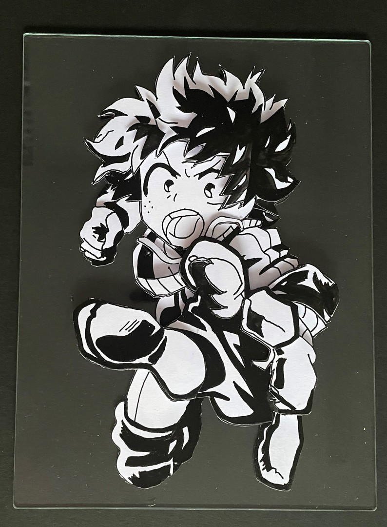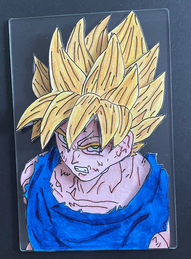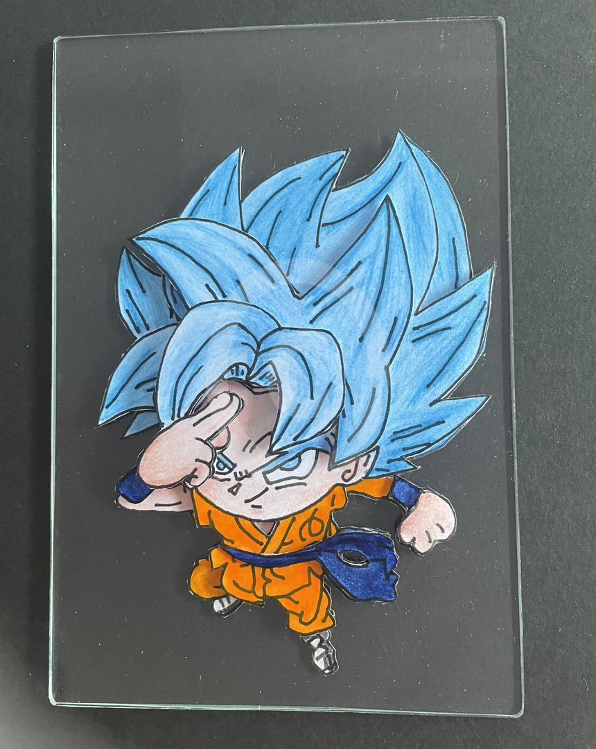 Goku ultra instinct sur vitre fourni avec son chevalet