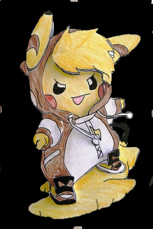 Le pokemon Pikachu déguisé en Raichu d'Aloha