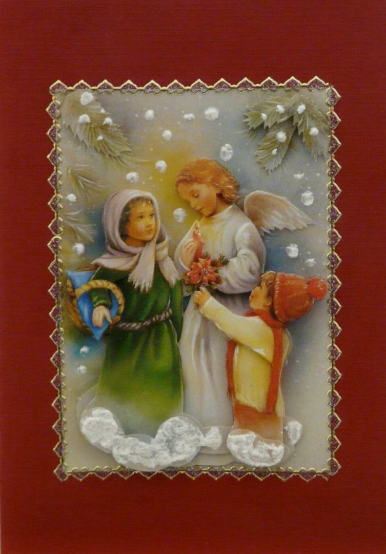 Carte se laquelle figure un ange avec deux enfant